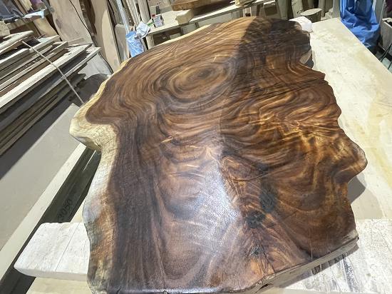 昨日販売分のモンキー輪切りと先週販売分の欅一枚板を仕上中です。 共に輪切りの一枚板。