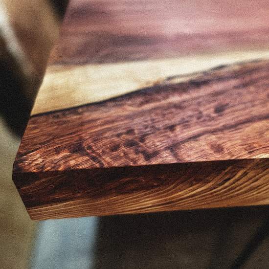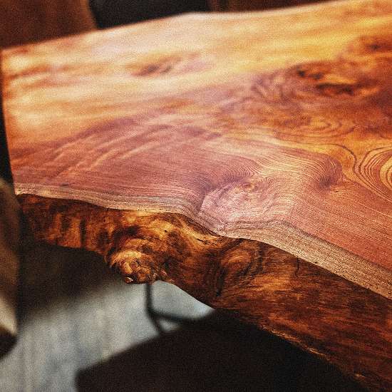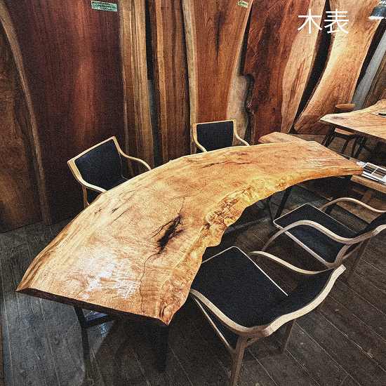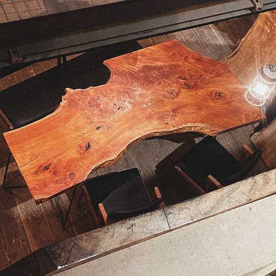 一枚板の魅力は、同じ木目・杢(もく)が二つと存在しないこと。