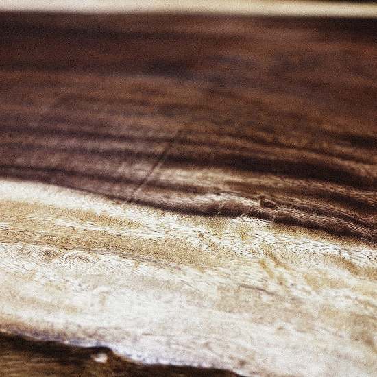 モンキーポッドの最大の特徴は、 中心の濃いブラウンと外側の明るい色味のコントラストです。 このグラデーションが自然に生まれることで、 一枚の中に豊かな表情が生まれます。 空間に置いたときのインパクトも大きく、 非常に人気の高い樹種です。