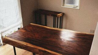 納品事例 富山・マリエとやま納品|好日山荘様イベントスペースへ欅一枚板テーブル